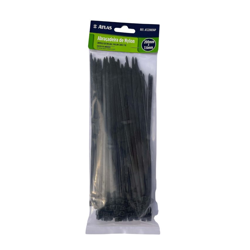 ABRACADEIRA NYLON PRETA 200x36mm c100un - ATLAS
