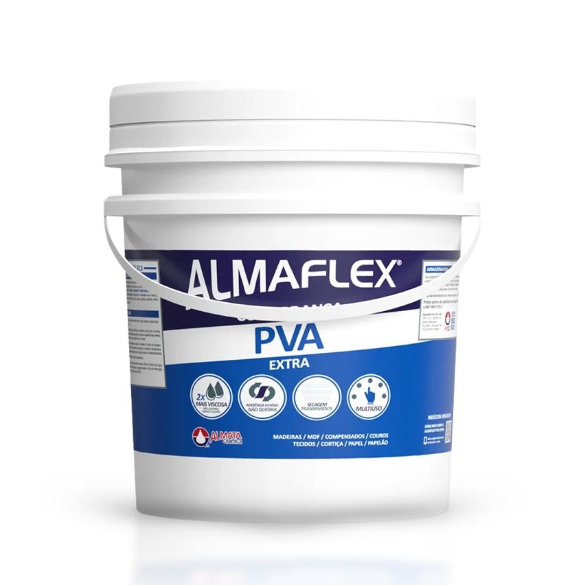Características:..- A Almaflex PVA Extra Forte é uma cola com secagem transparente e flexível que apresenta alto grau de aderência..- Sendo muito resistência ao impacto devido sua formulação de elevada plastificação..- Com sua exclusiva formulação, após curada pode ser lixada e pintada..- Apresentando ainda adesão extraforte, secagem transparente e é resistente ao impacto...Aplicações:.MADEIRA DE BAIXA E MÉDIA DENSIDADE, MDF, COMPENSADOS, AGLOMERADOS, LAMINADOS PLÁSTICOS, FENÓLICOS, MATERIAIS POROSOS..