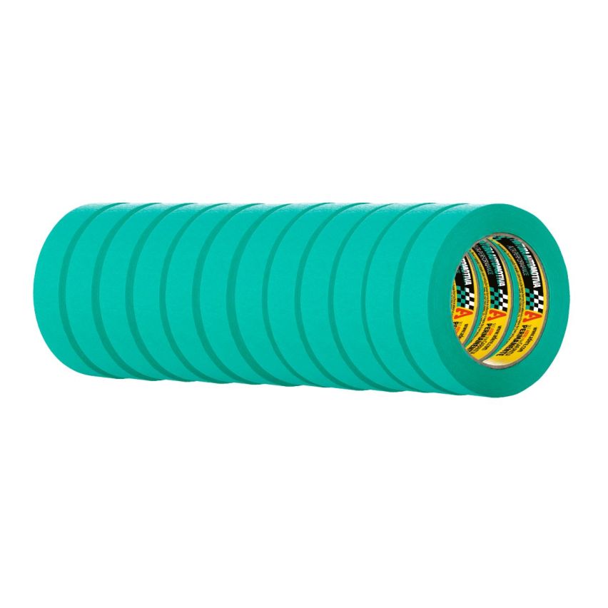 A Fita Crepe Automotiva 525 é apresentada na cor verde tem alta performance e foi especialmente desenvolvida para profissionais