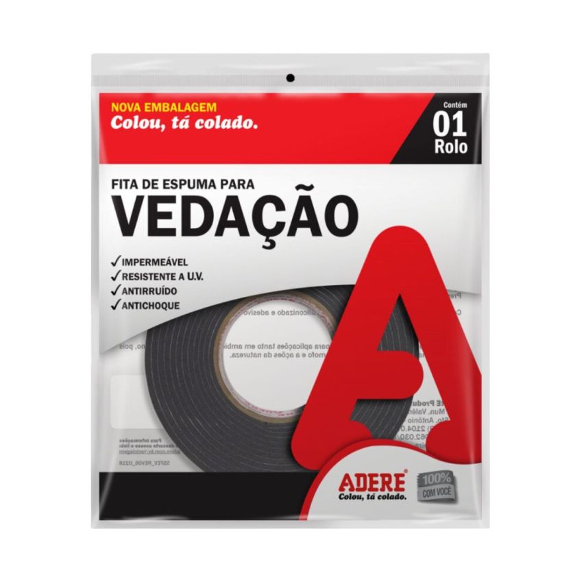 - Seu adesivo diferenciado, associado à espuma de alta performance, conferem ao produto excelente impermeabilidade, ótima adesão, resistência a UV (ultra-violeta/uso externo), anti-mofo, excelente memória de retorno à compressão, ótima resistência a intempéries.