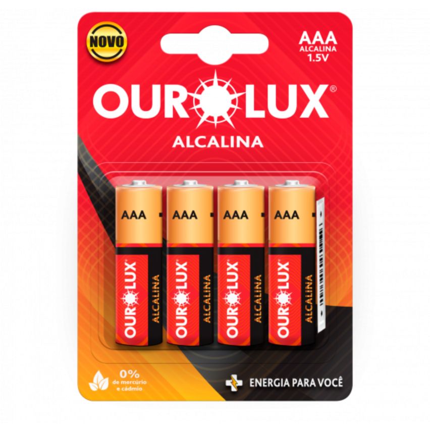 PILHA ALCALINA AAA Palito Blister c 4 un - OUROLUX
